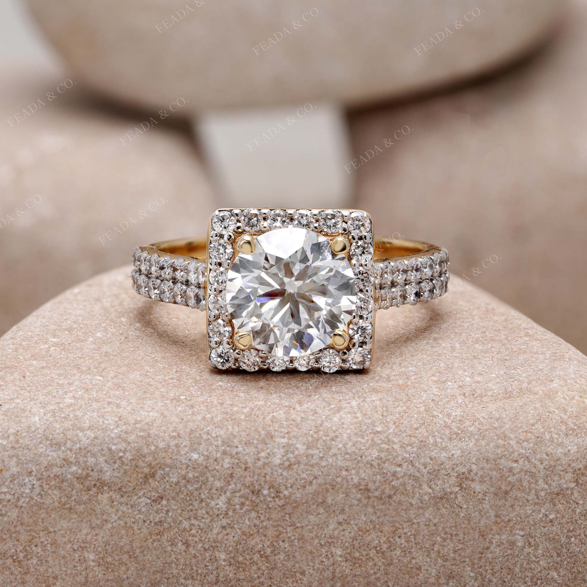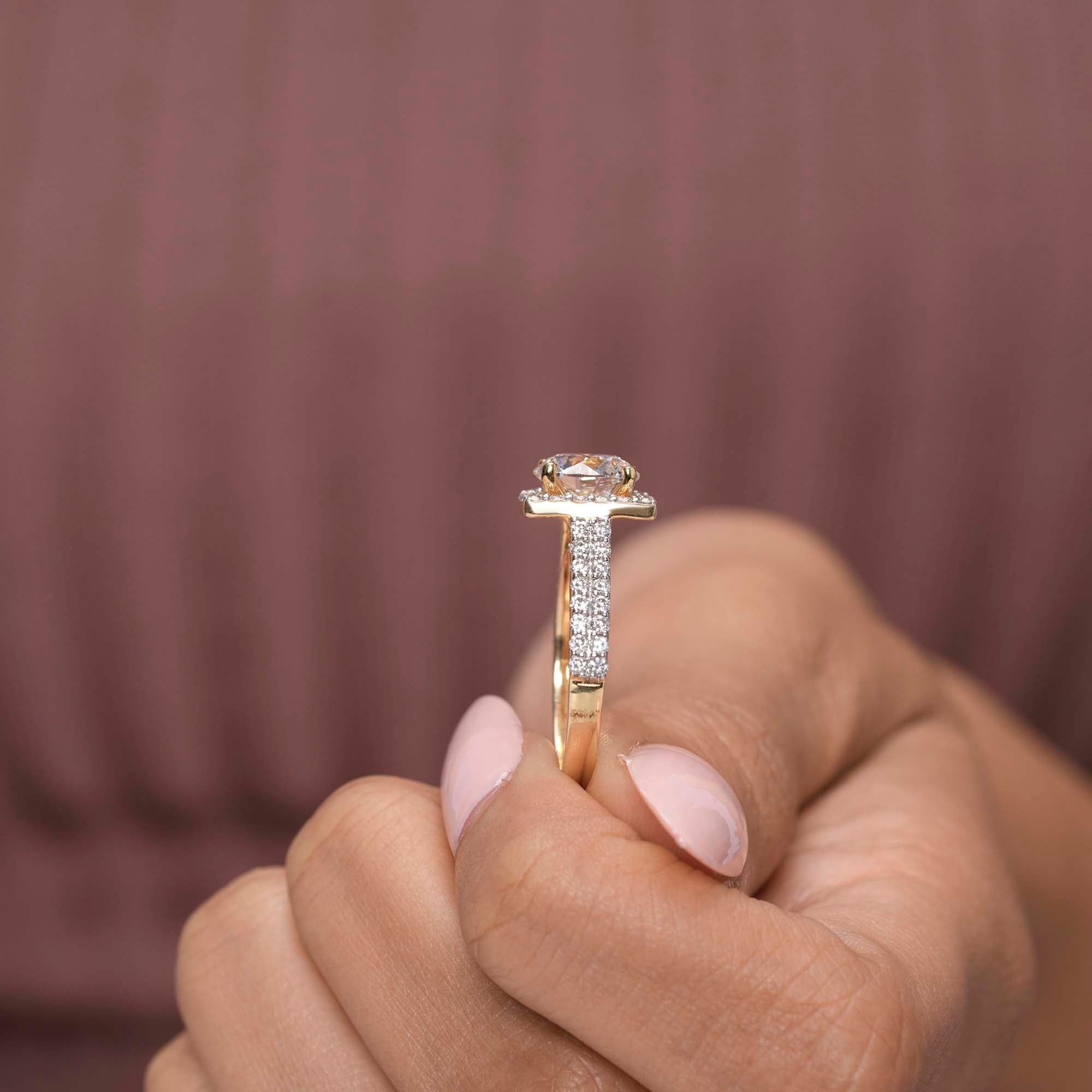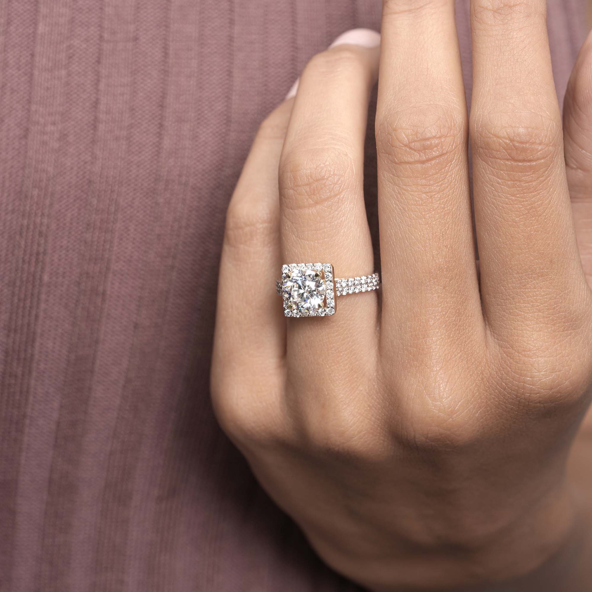 • Setting: Full halo + double-row pavé band for elevated sparkle