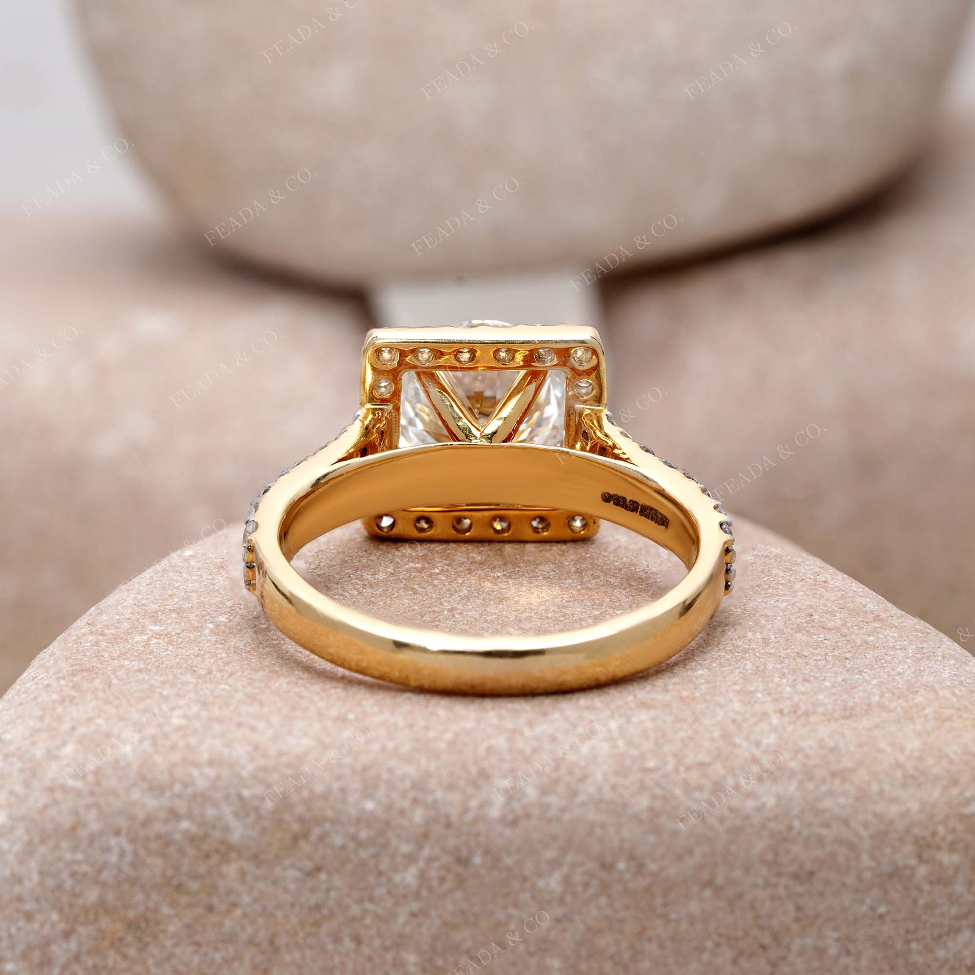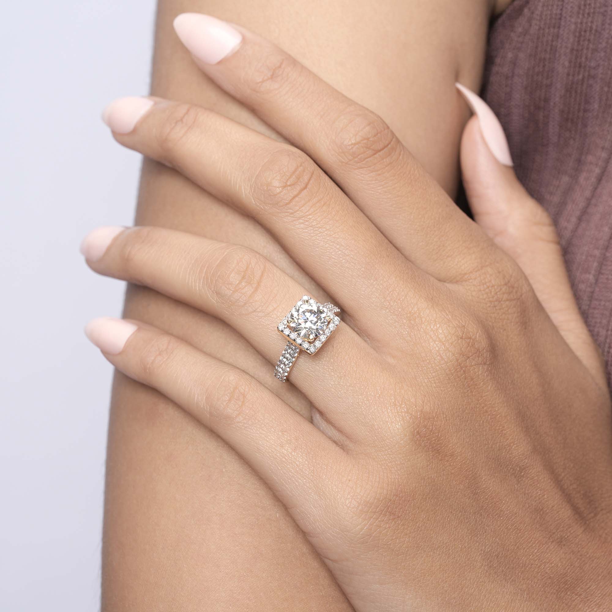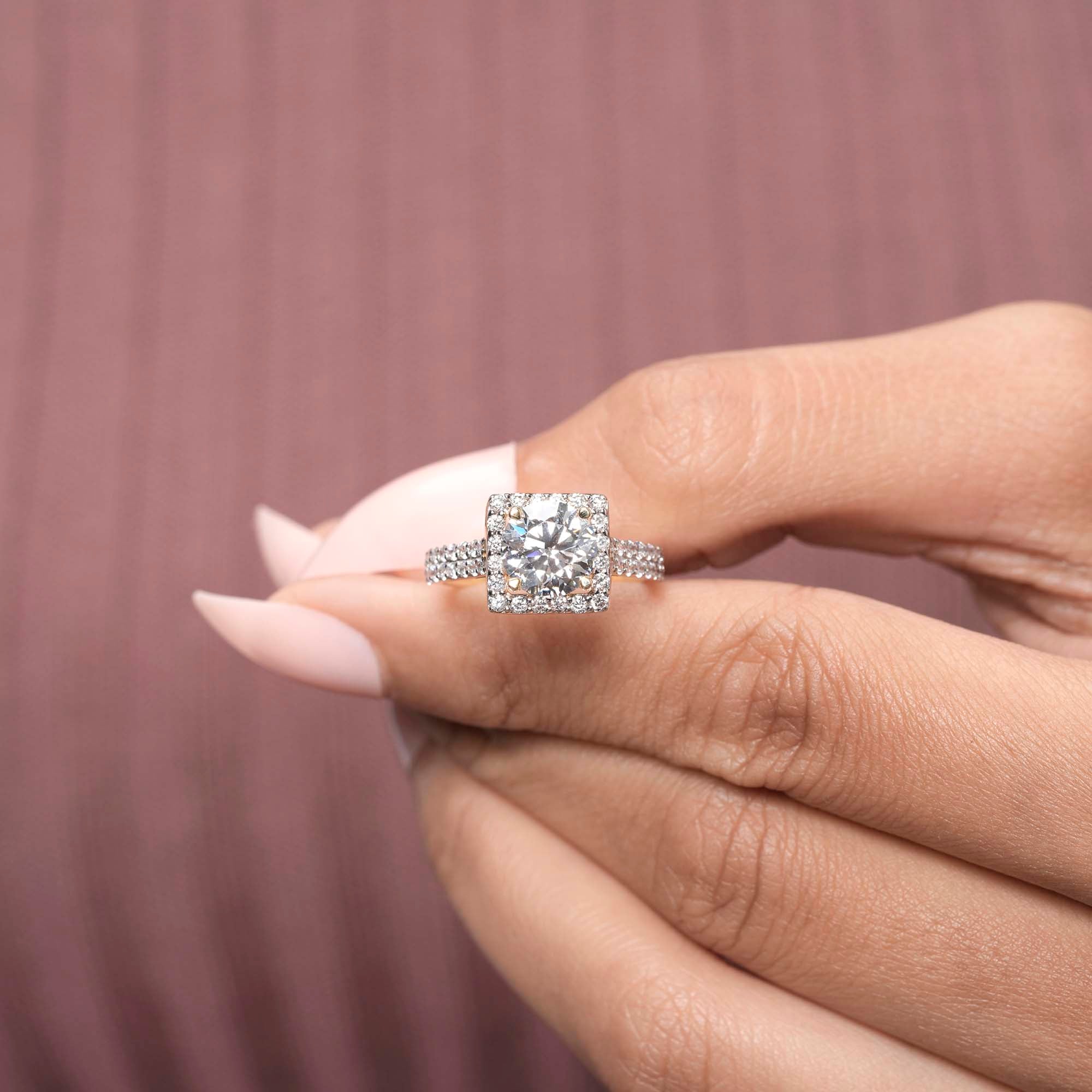 • Setting: Full halo + double-row pavé band for elevated sparkle